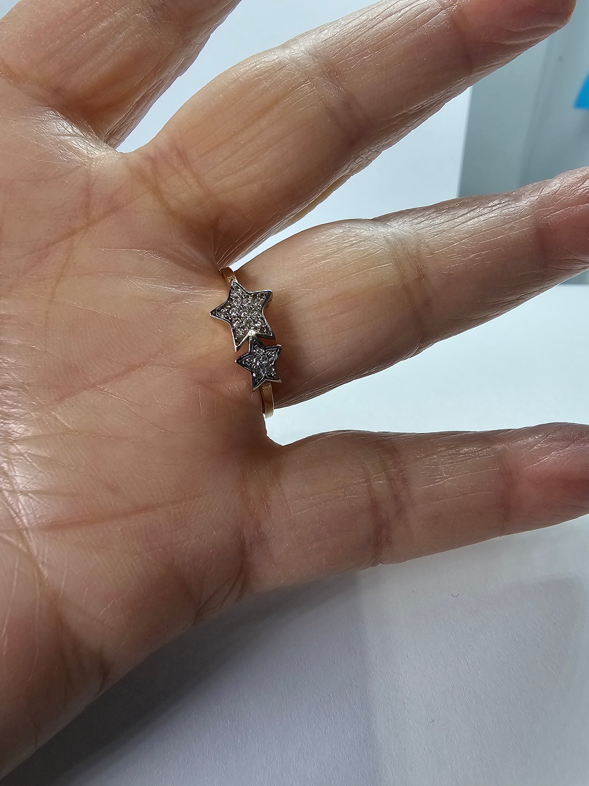 Enhance any outfit with our Anillo con estrellas 14k. Made with durable 14k gold, this ring features a unique star design that adds a touch of elegance and style. Perfect for everyday wear or special occasions. Upgrade your jewelry collection today!
