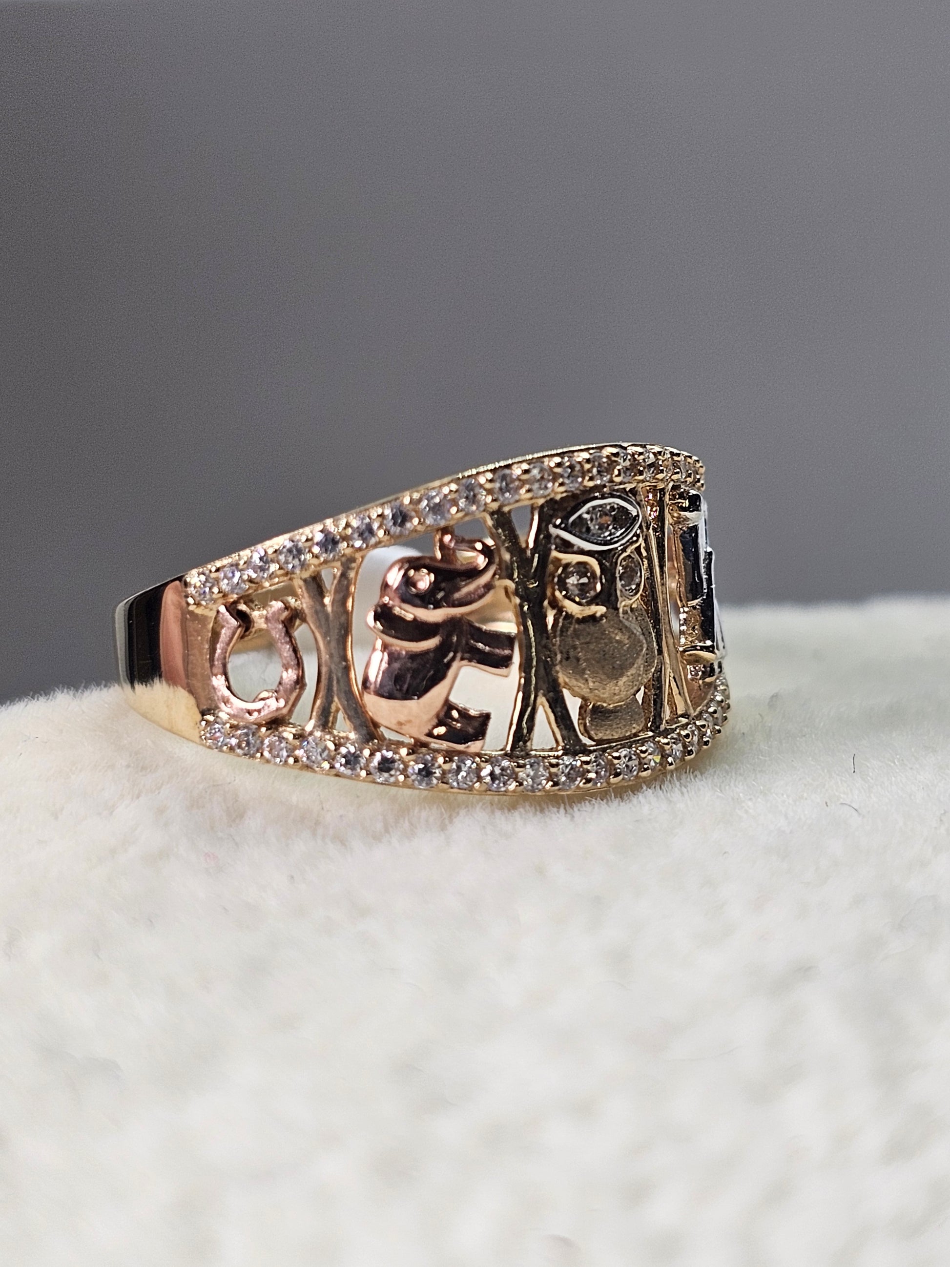 Crafted with the finest 14k gold, the Anillo de la suerte is a symbol of good fortune and luck. This elegant ring is sure to elevate any outfit and bring positive energy to the wearer. Solidify your style and increase your luck with the Anillo de la suerte.
