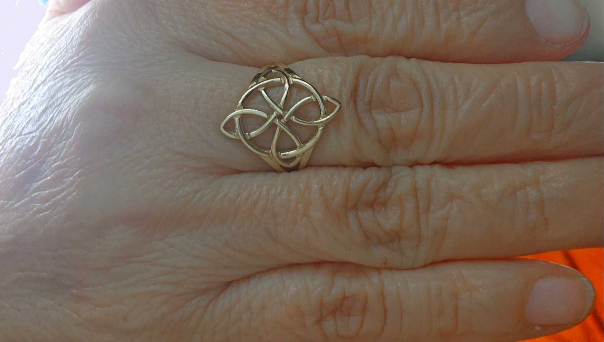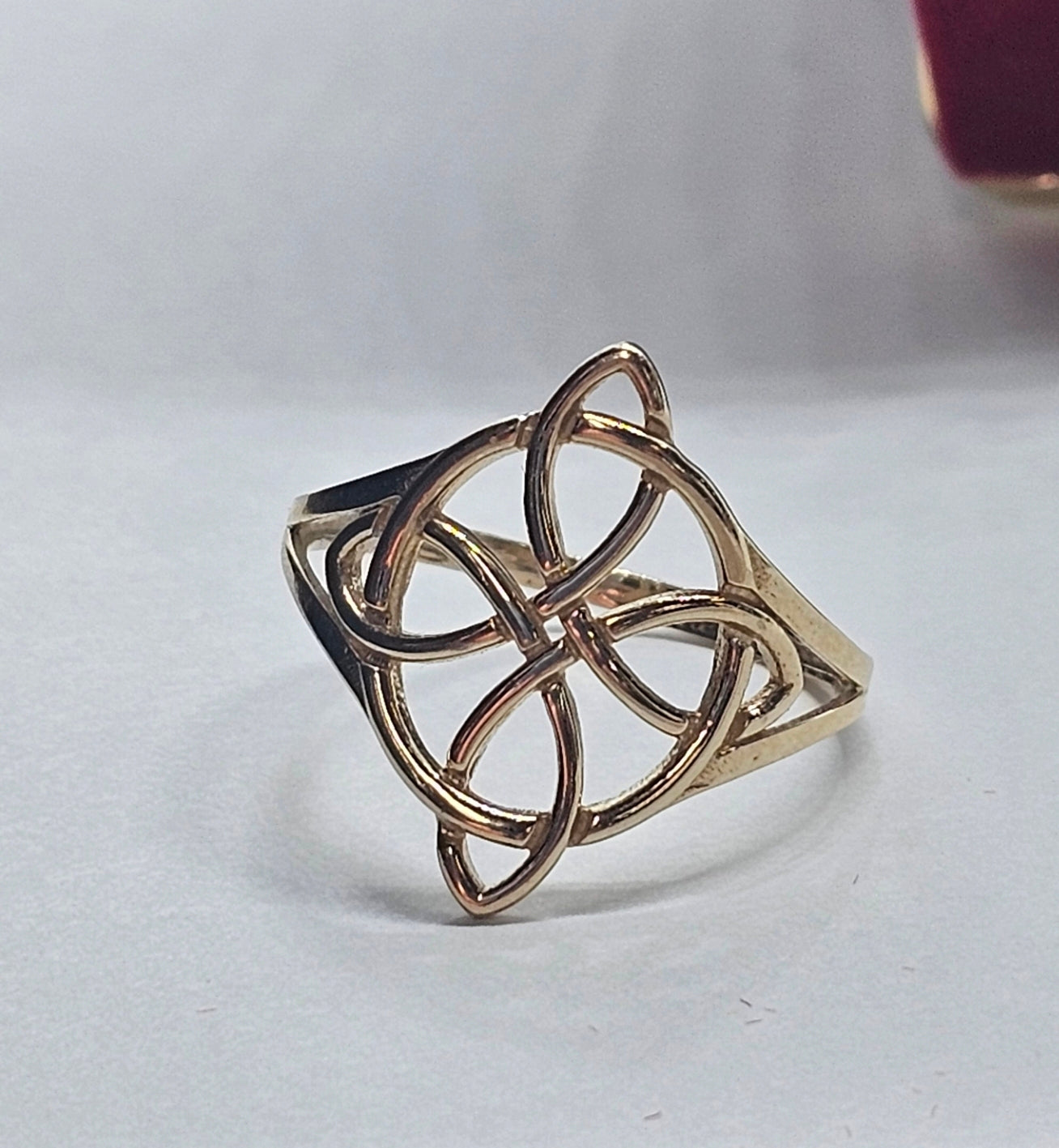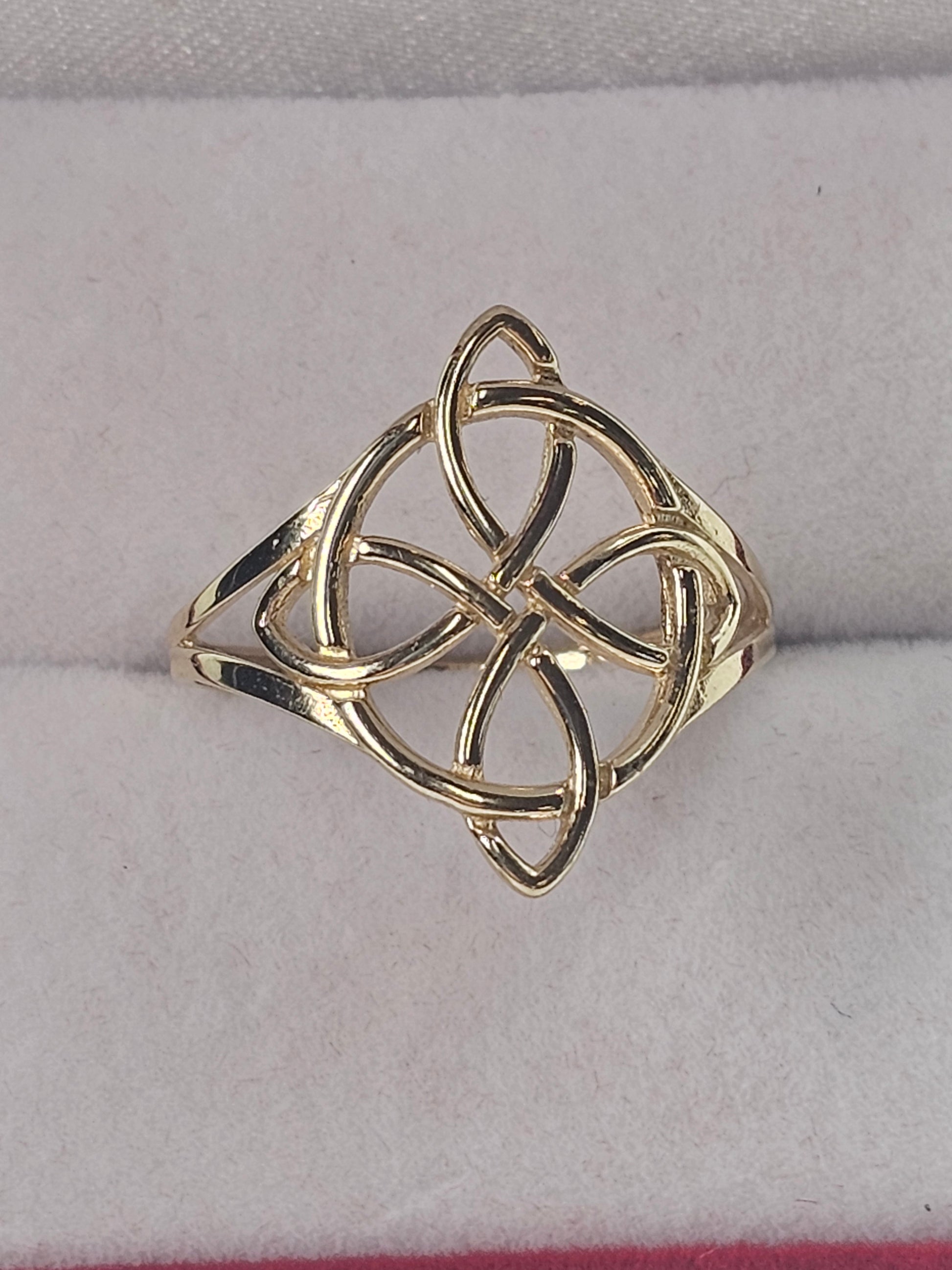 Embrace ancient symbolism with this striking Witch's Knot ring, meticulously crafted in 14k Italian gold. The intricate interlocking design represents protection and spiritual connection, making it a meaningful choice for those drawn to mystical heritage. Its timeless pattern catches light beautifully, offering both visual depth and wearable artistry. Perfect as a personal talisman or a thoughtful gift for someone who values symbolic jewelry. Available in size 9, this handcrafted piece combines premium materials with purposeful design.