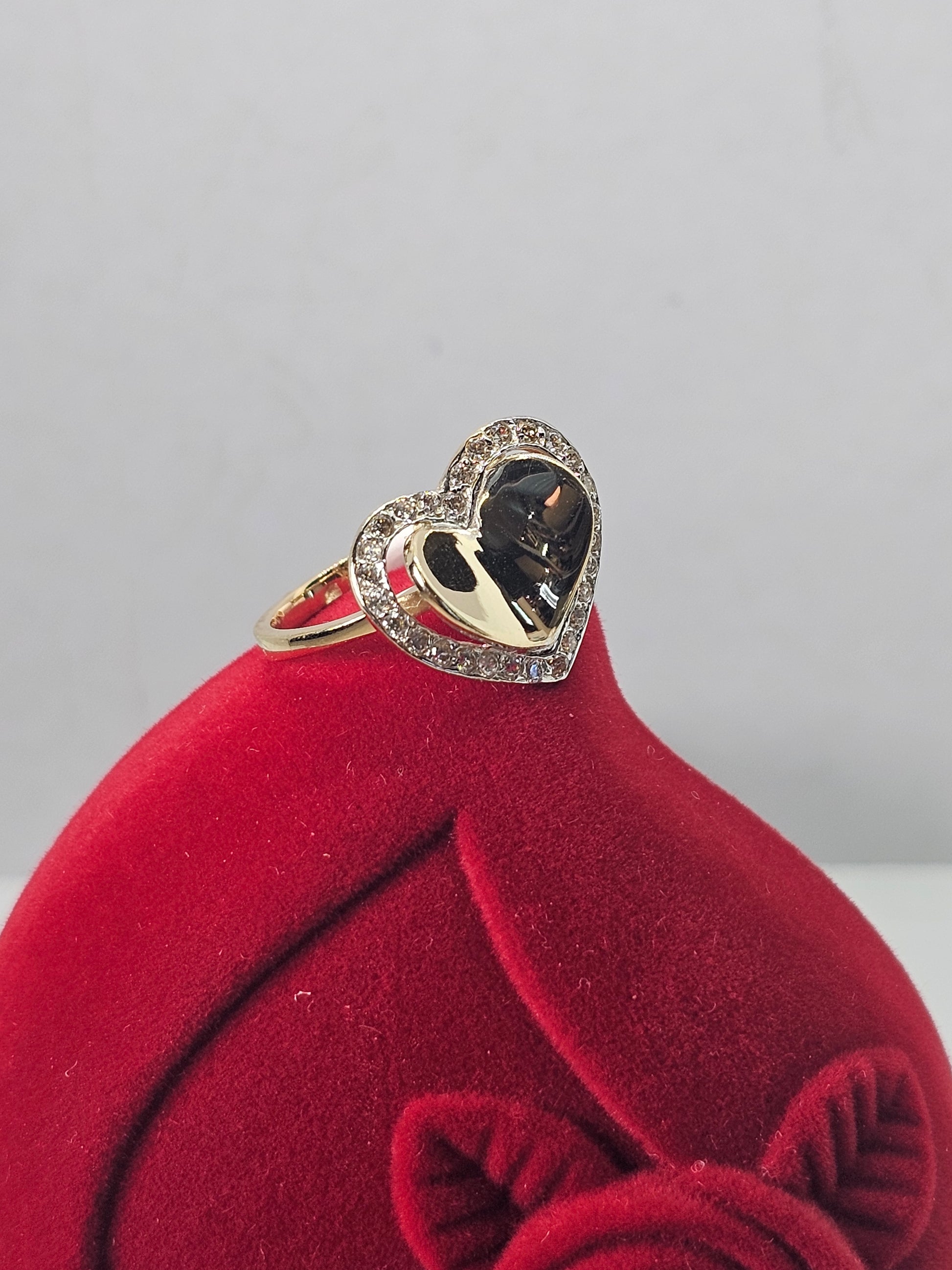 Crafted from 14k gold, this Anillo features a delicate heart design for a romantic touch. With its timeless elegance, this piece is perfect for adding a touch of love to any outfit. Made with quality materials, this Anillo is sure to be a lasting addition to your jewelry collection.