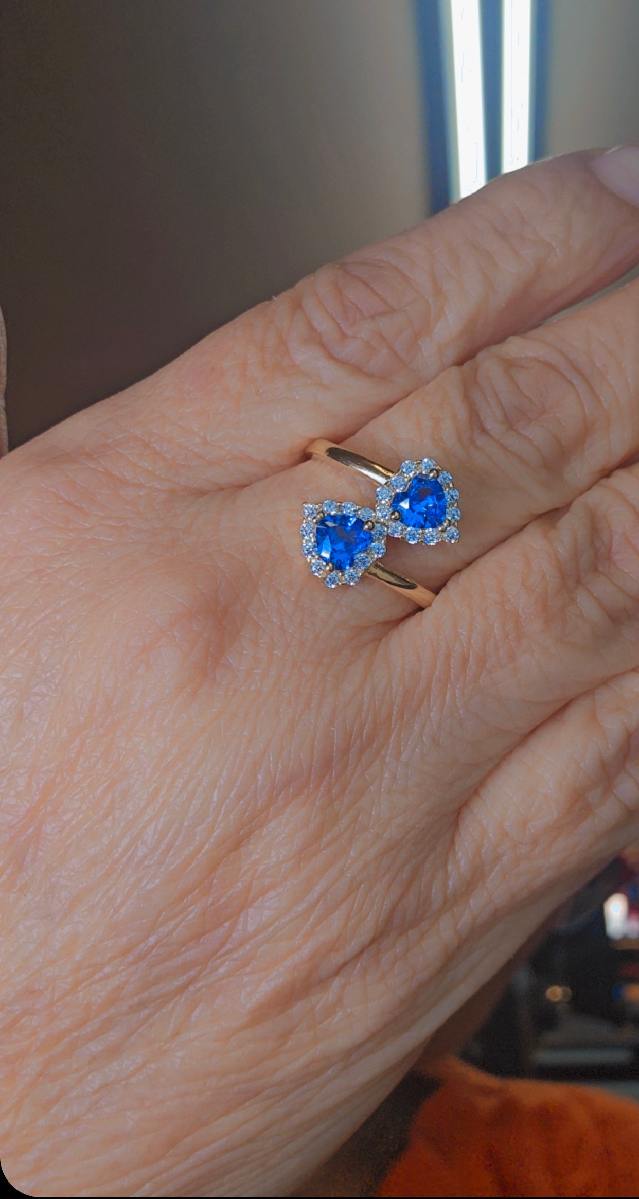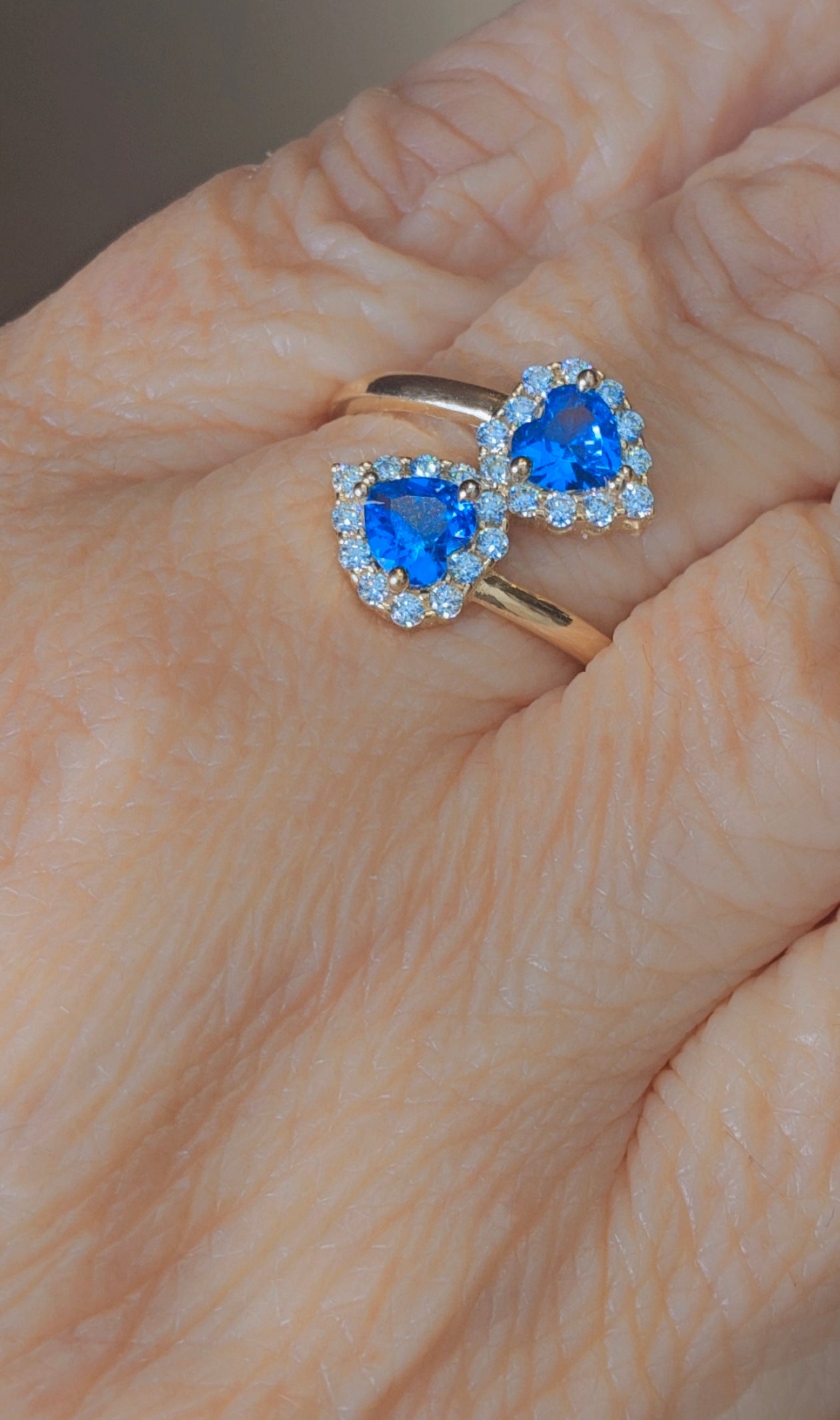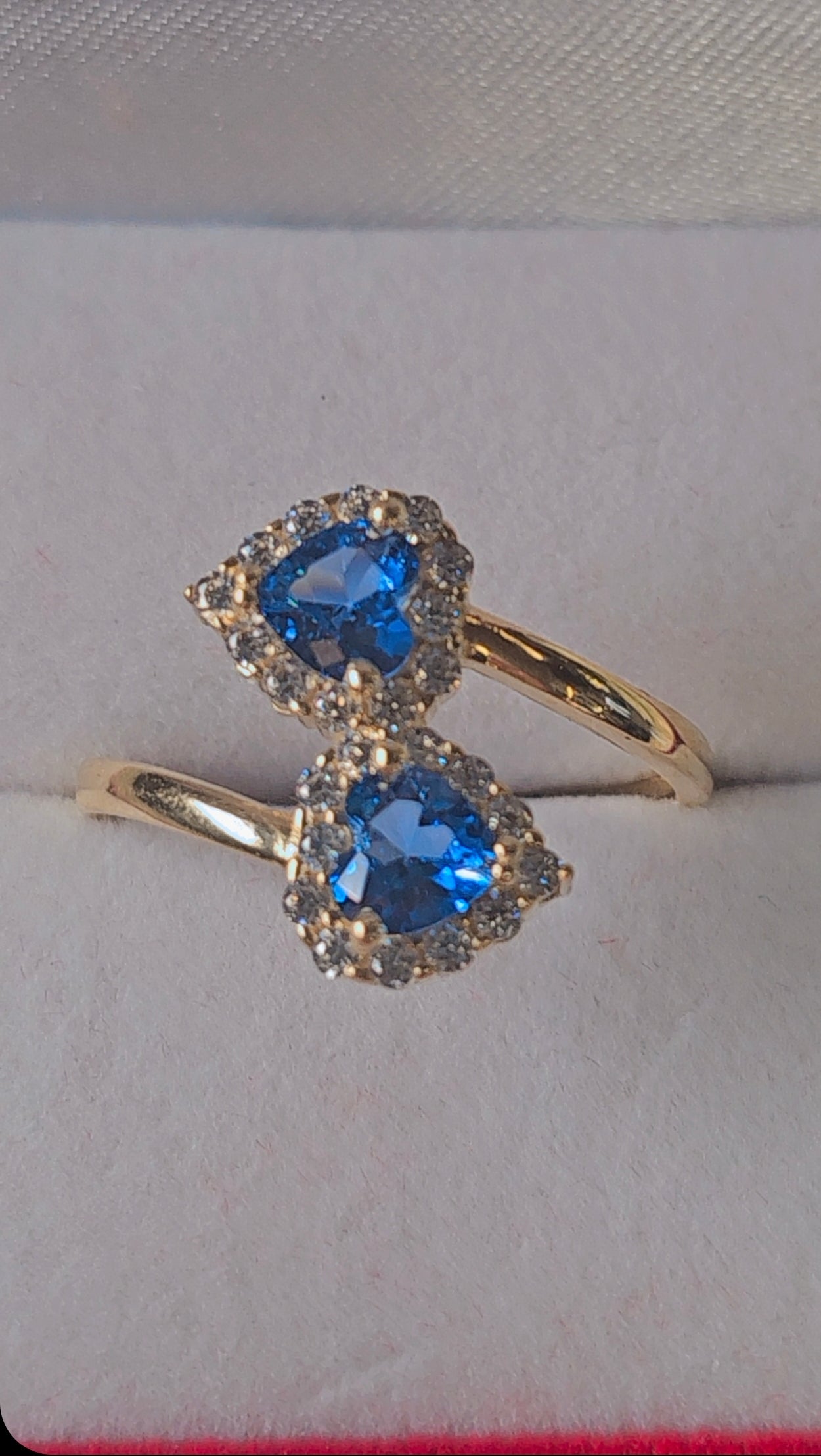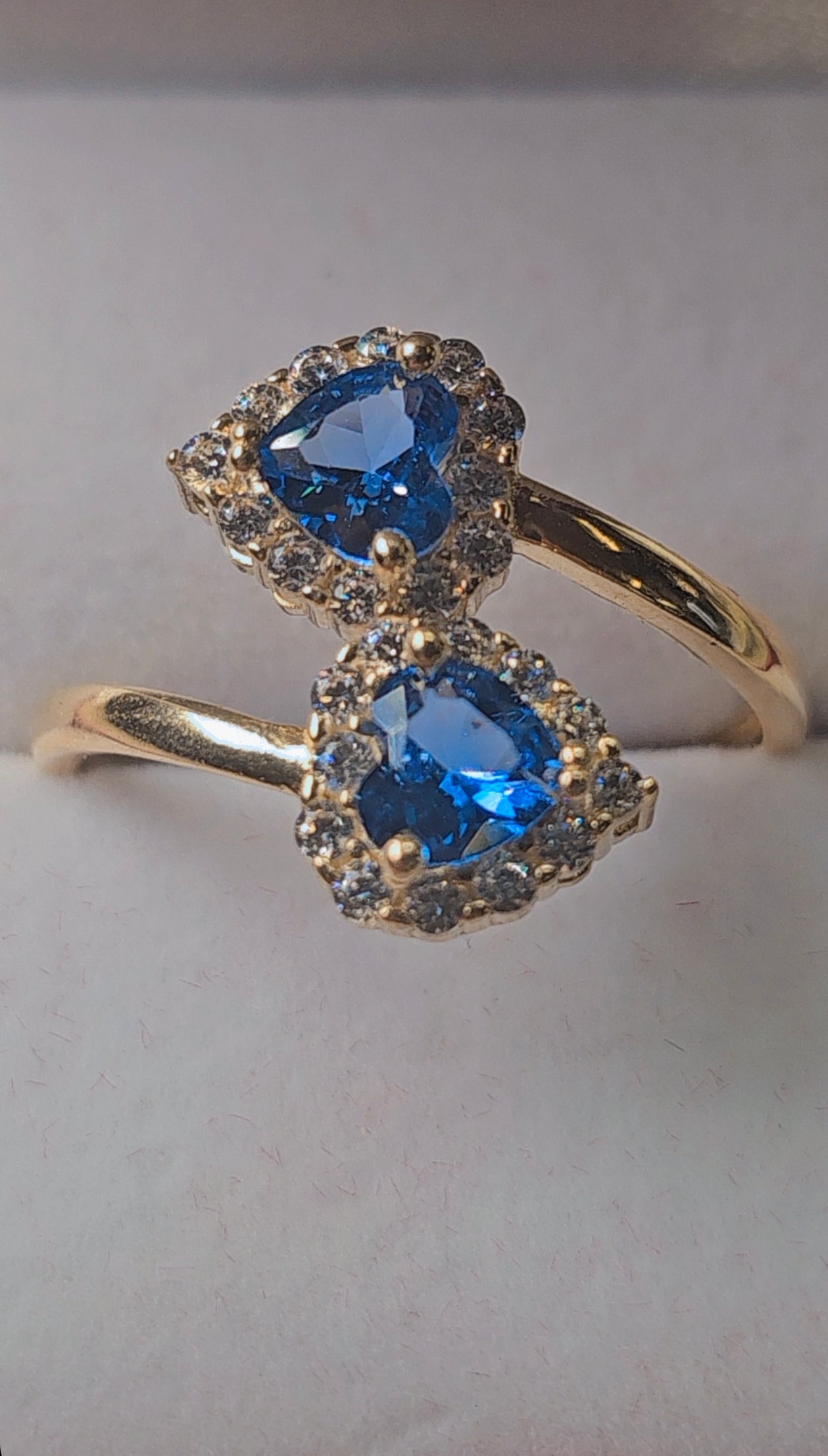 This gorgeous ring, crafted from 14k gold, features a distinctive double heart design. This piece exemplifies durability and elegance, making it suitable for daily wear. The 14k gold composition ensures a balance between strength and aesthetic appeal, enhancing its longevity and maintaining its shine over time.