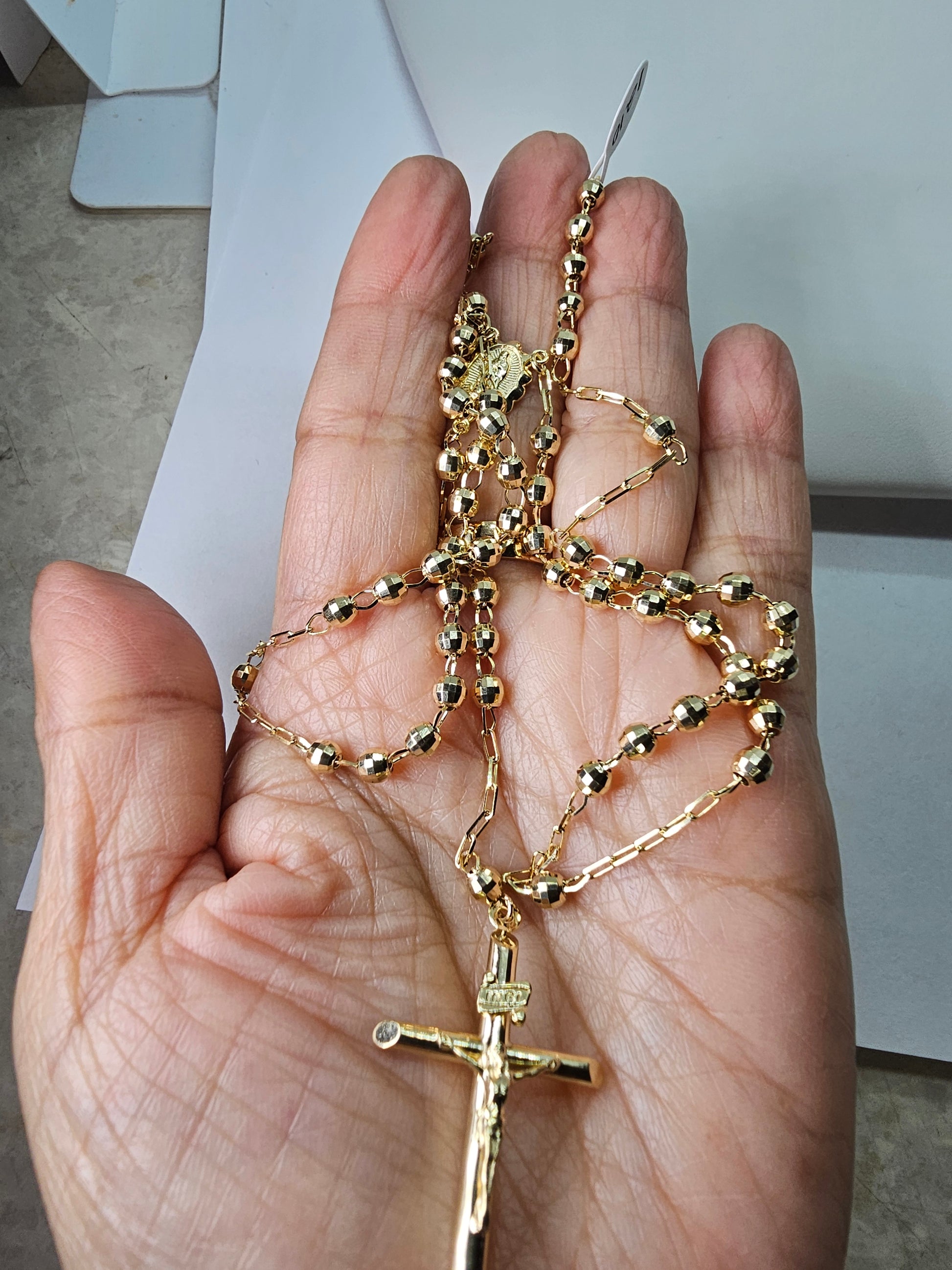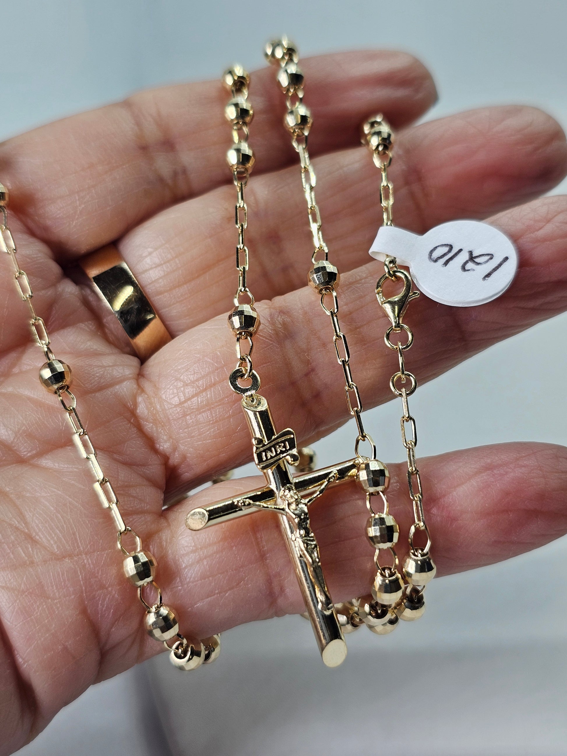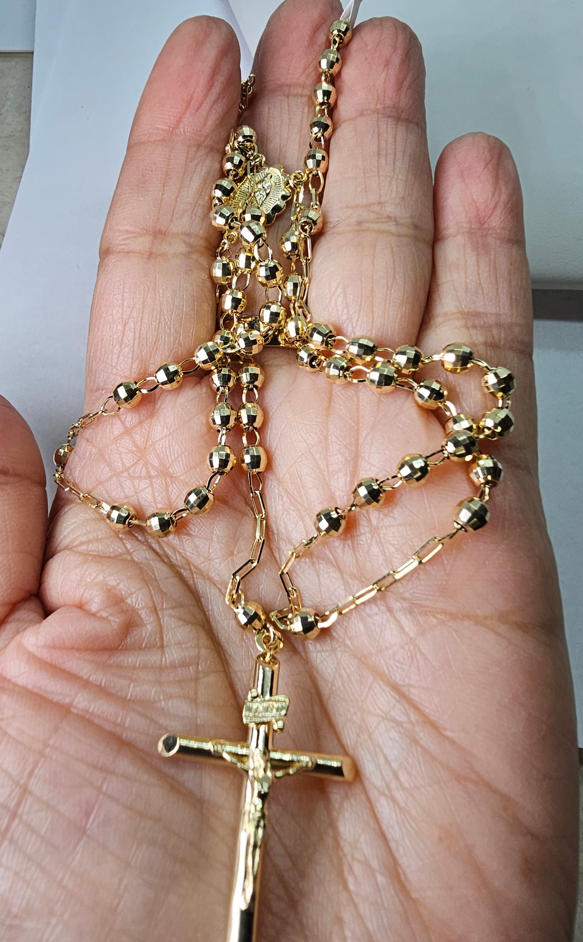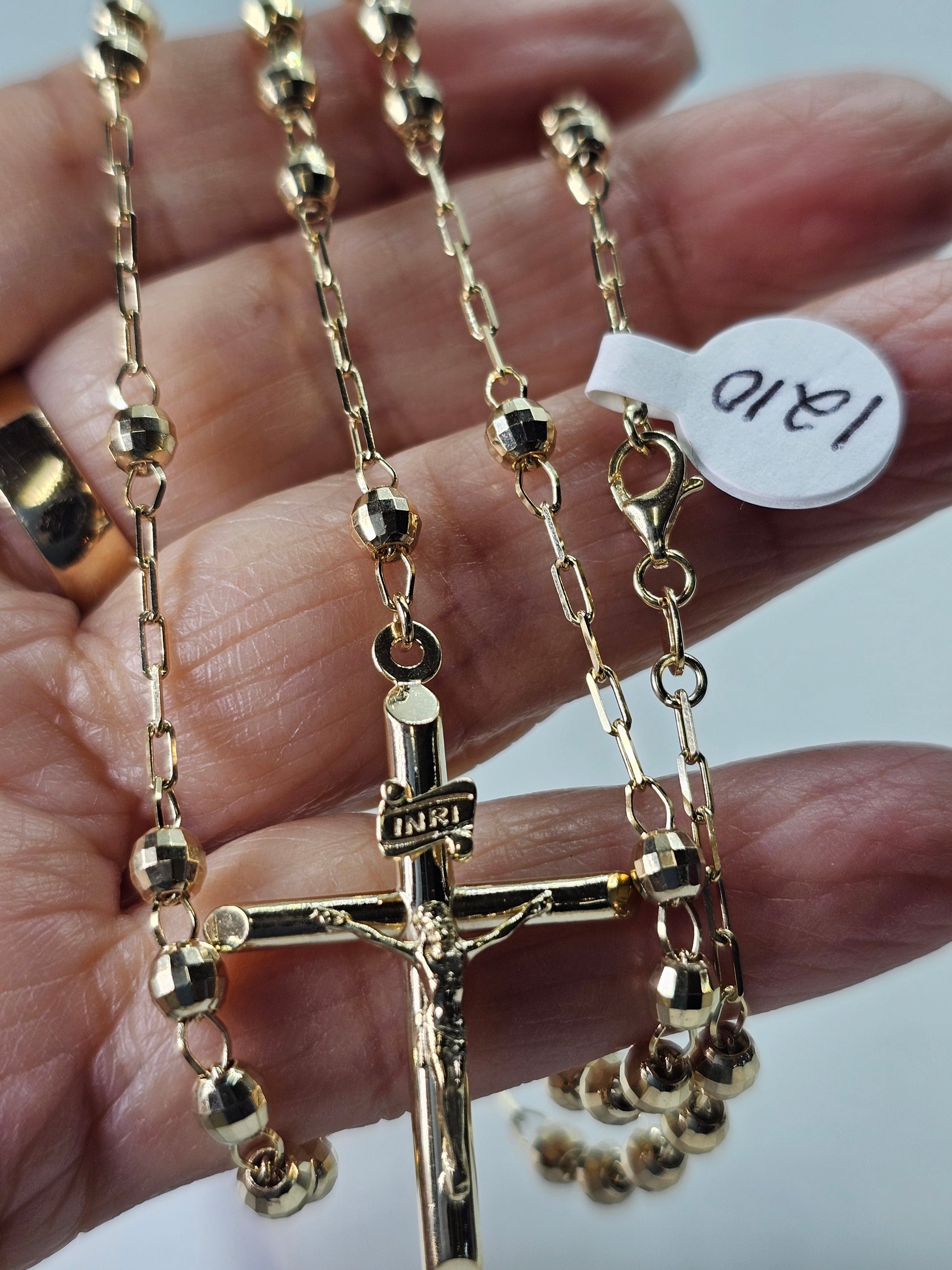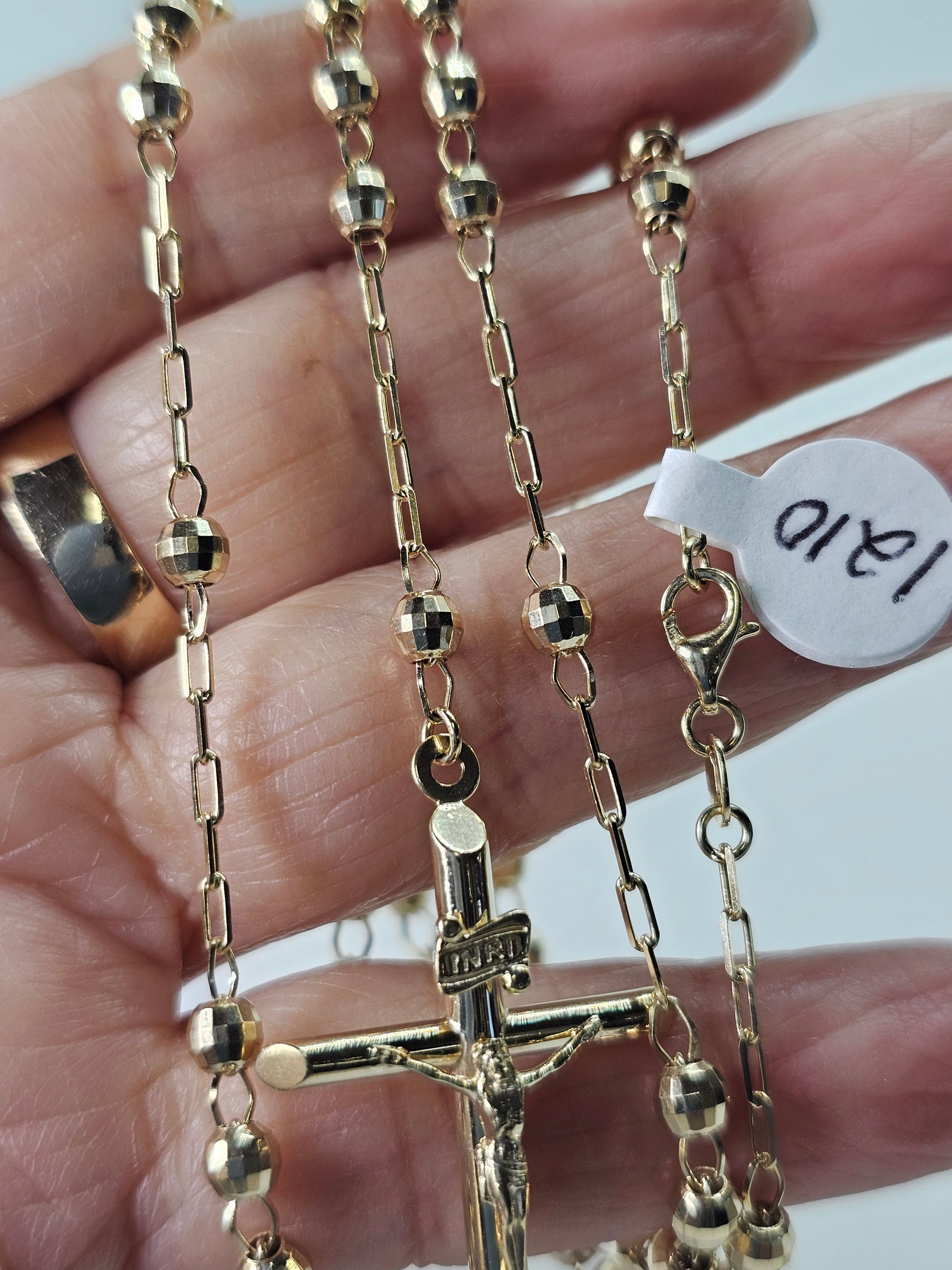 Expertly crafted from high-quality 10k Italian gold, this Rosary is a must-have piece for any jewelry collection. Its elegant design and superior craftsmanship make it a timeless and versatile accessory that will elevate any outfit. Make a statement with this beautiful and authentic Italian piece.