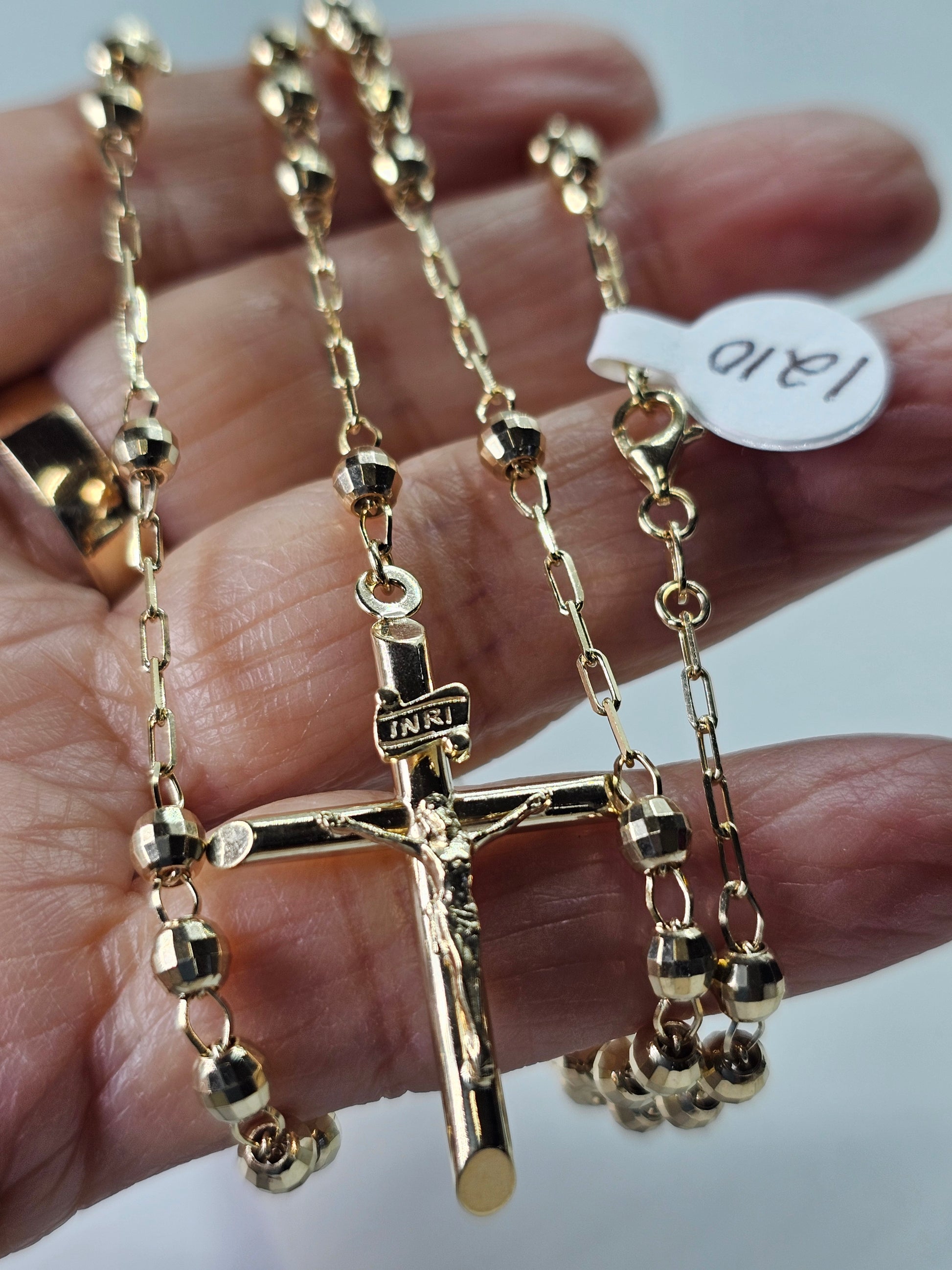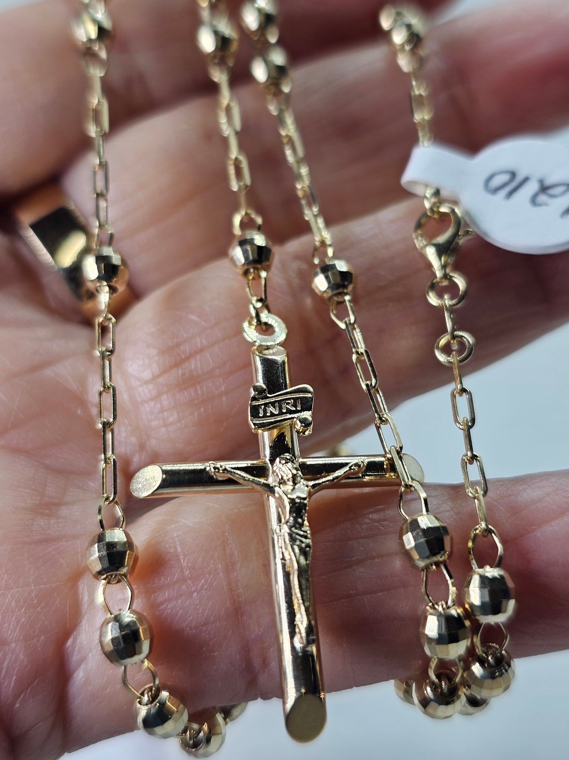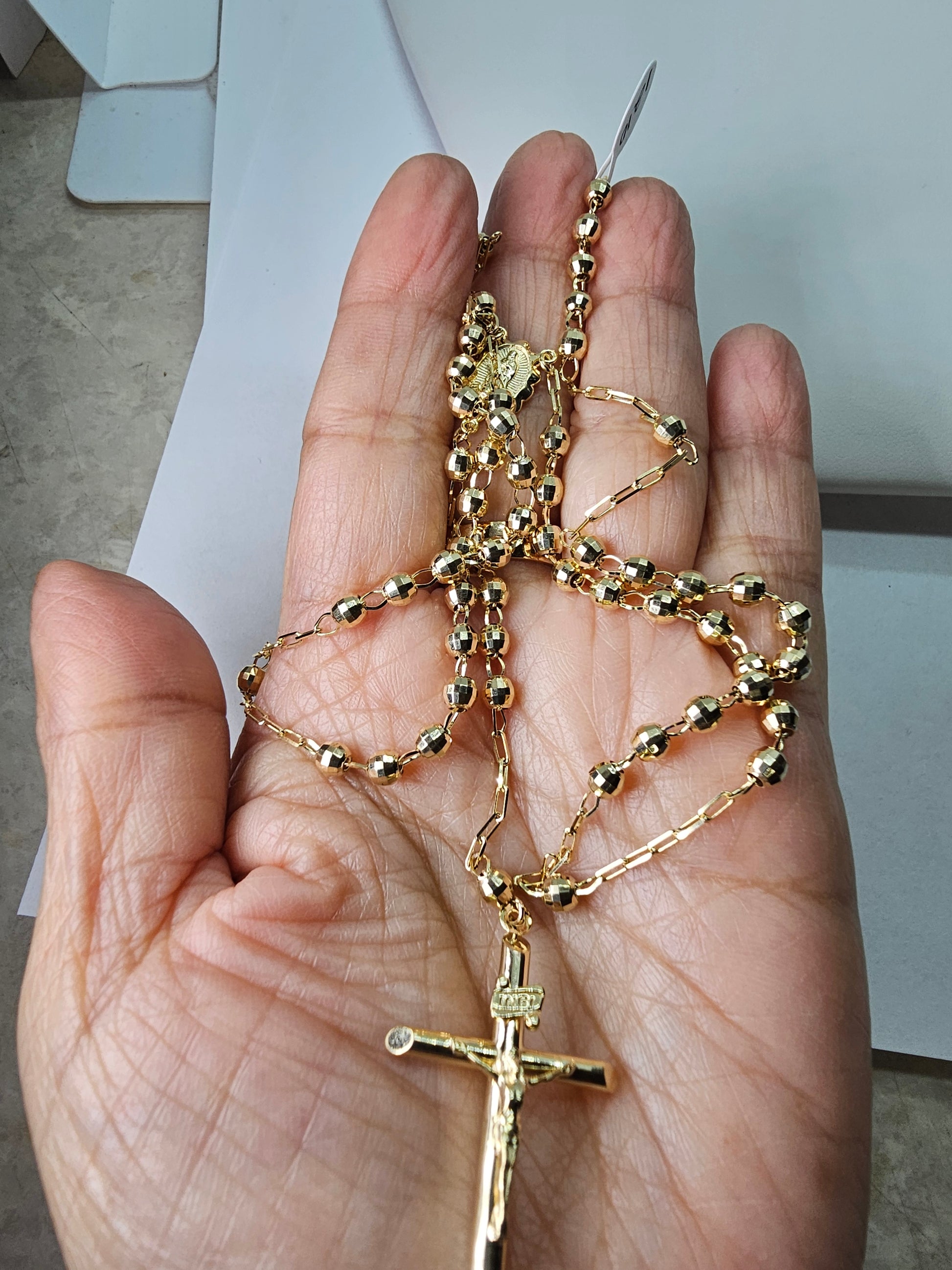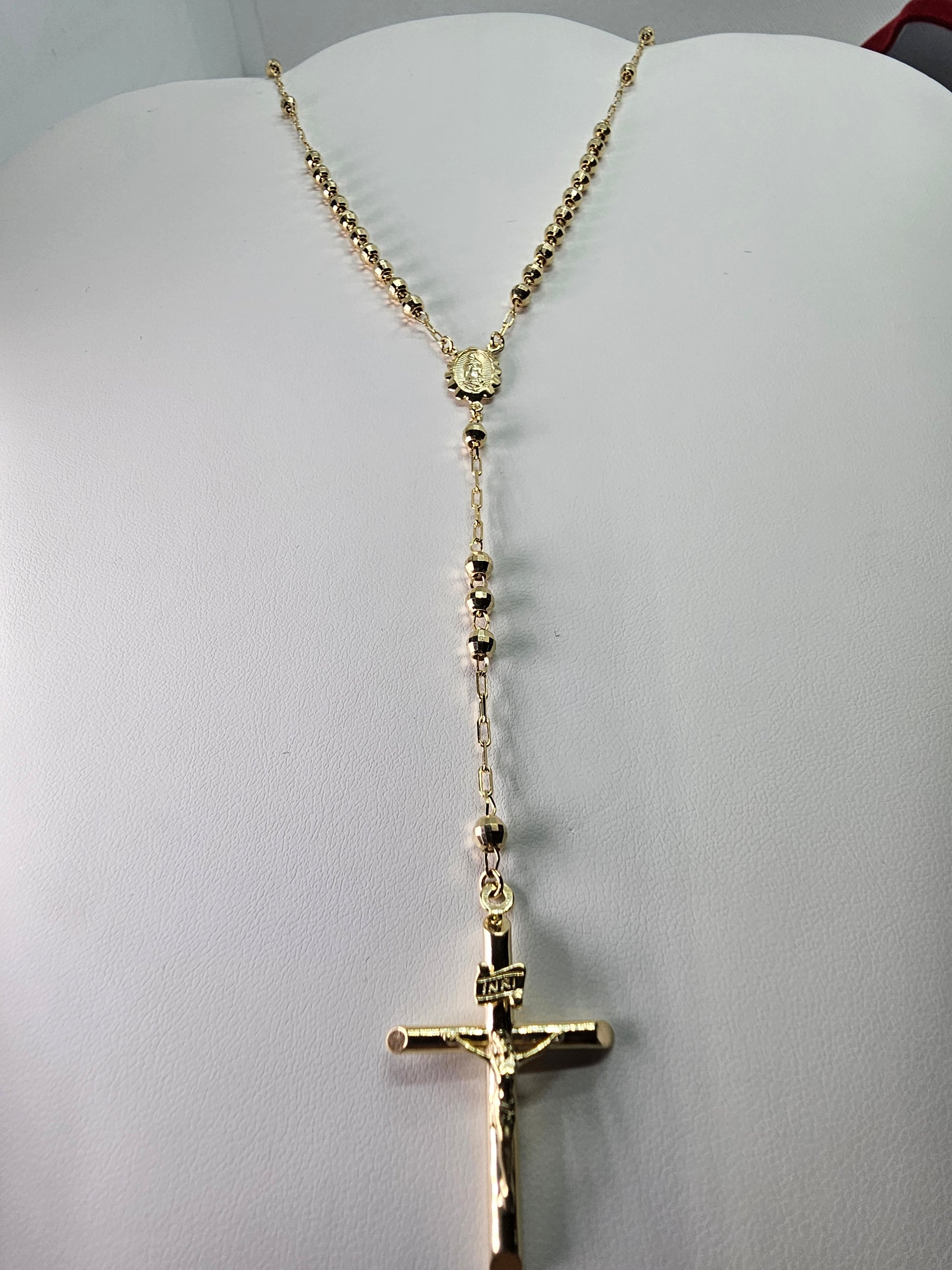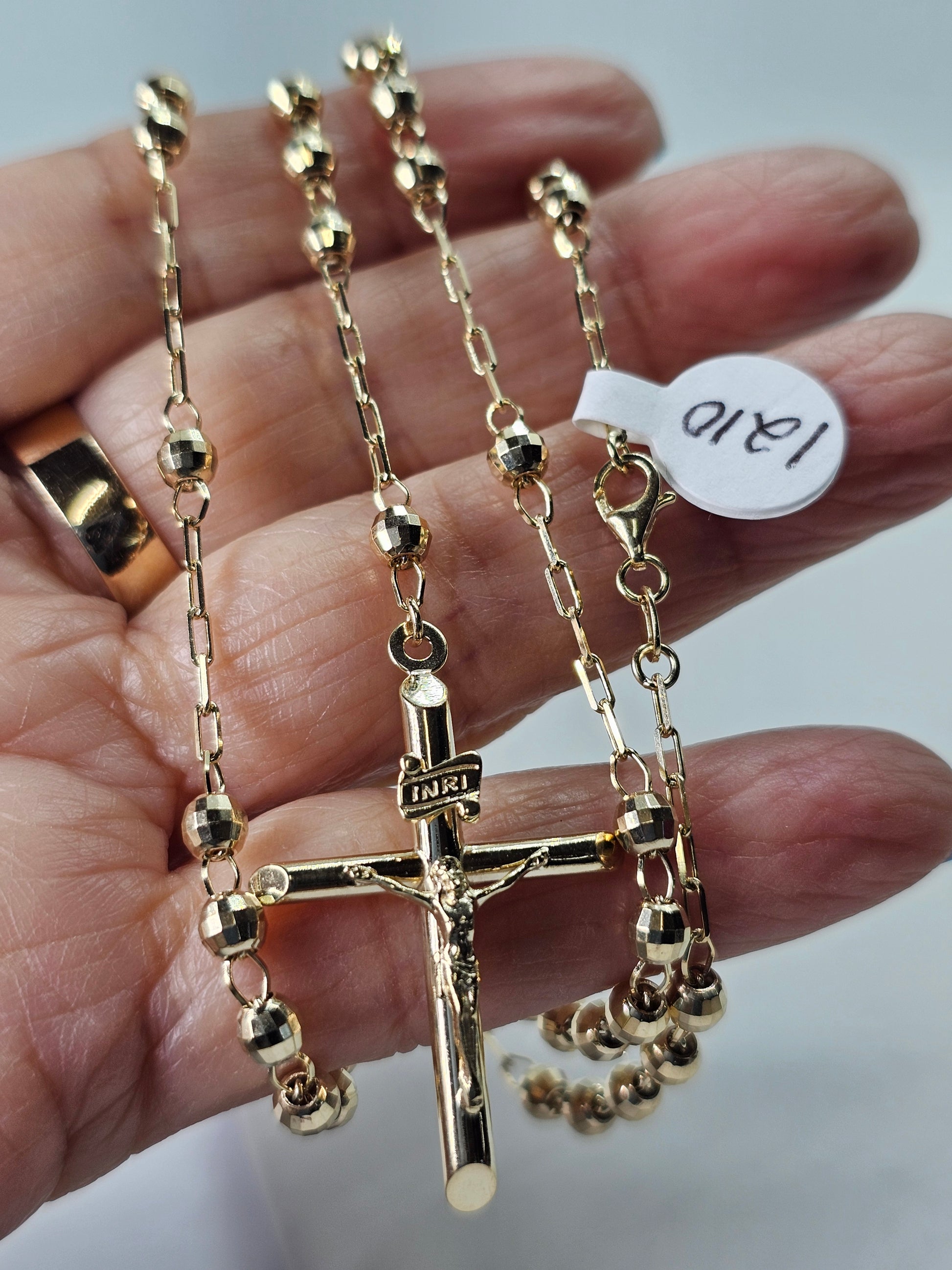 Expertly crafted from high-quality 10k Italian gold, this Rosary is a must-have piece for any jewelry collection. Its elegant design and superior craftsmanship make it a timeless and versatile accessory that will elevate any outfit. Make a statement with this beautiful and authentic Italian piece.
