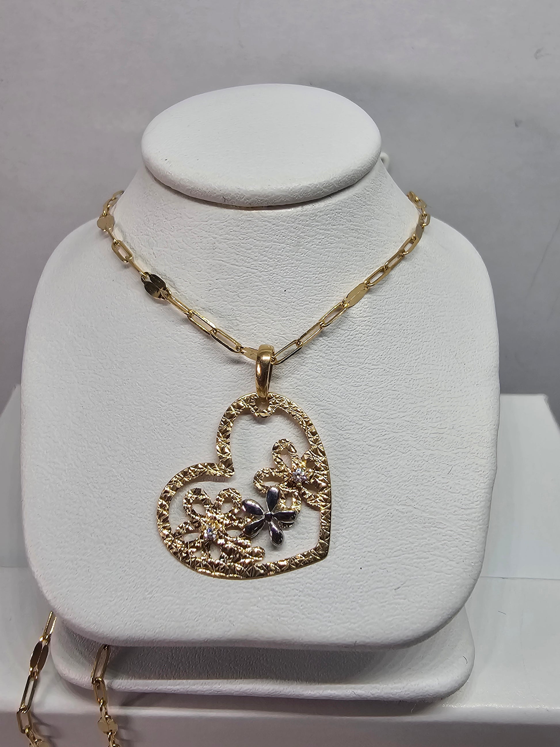 Expertly crafted for heart health, the Dige corazón 14k y cadena features a secure peper clip on an 18" chain. Made of luxurious 14k gold, this essential piece offers timeless style and peace of mind.