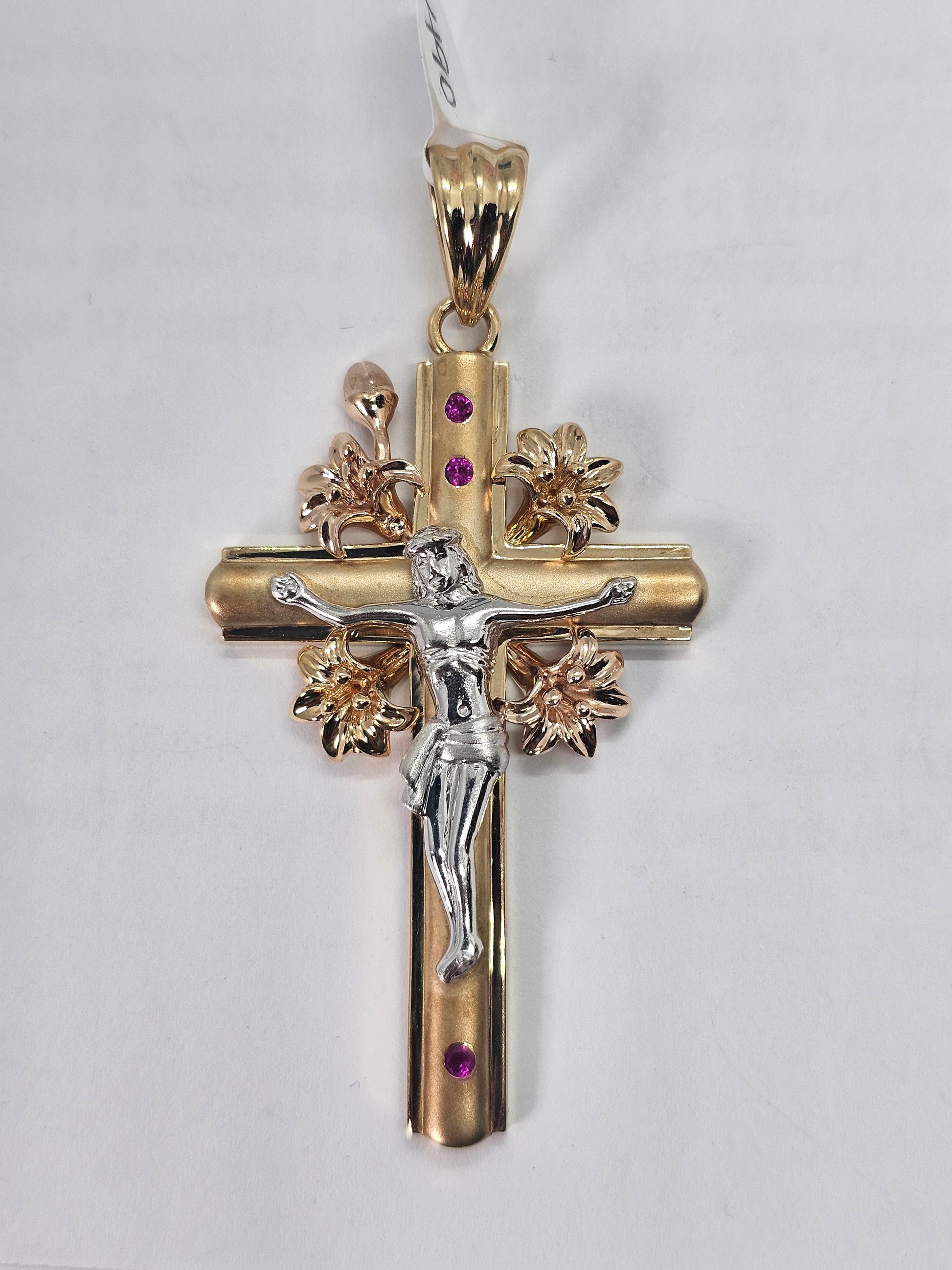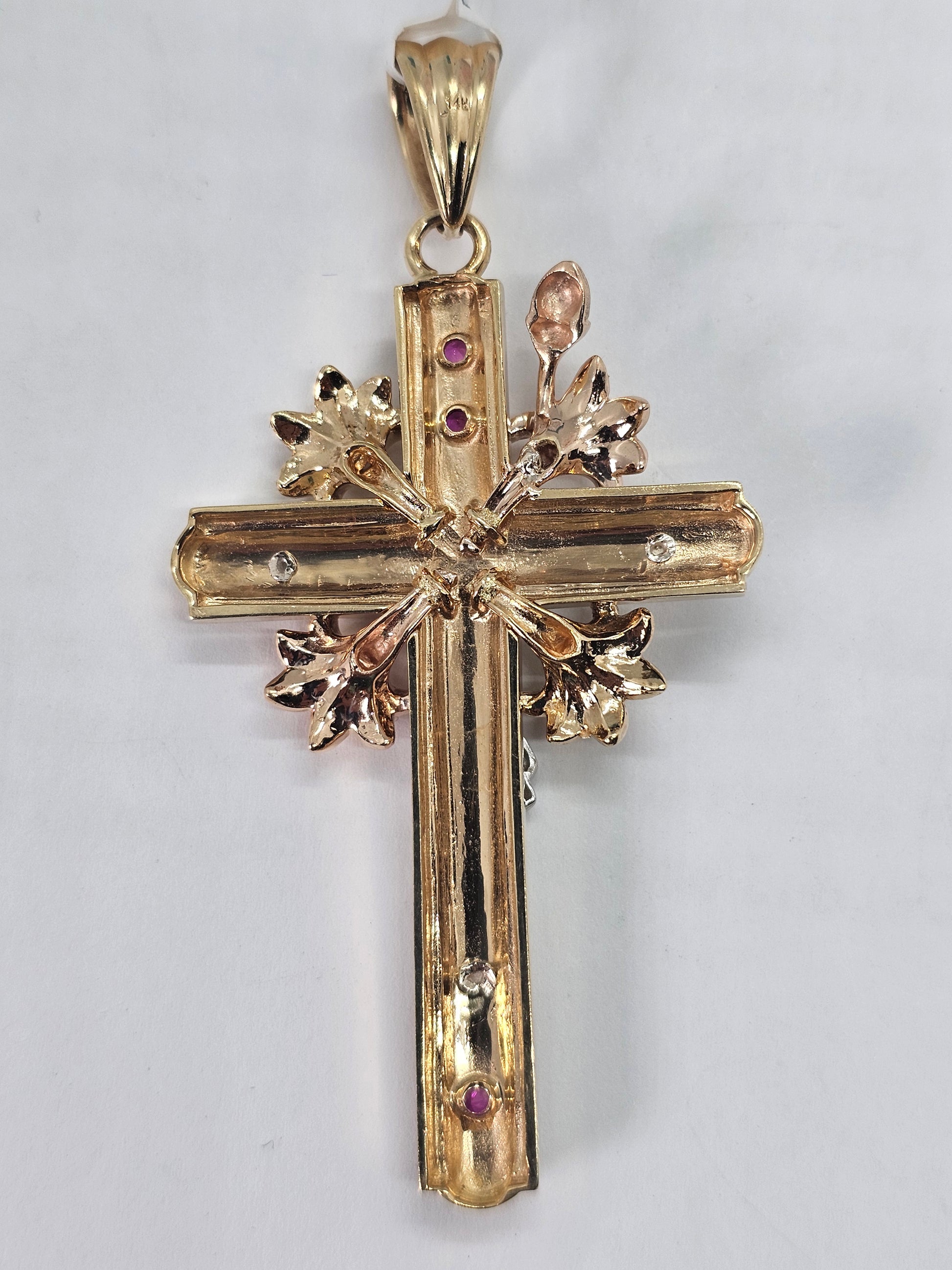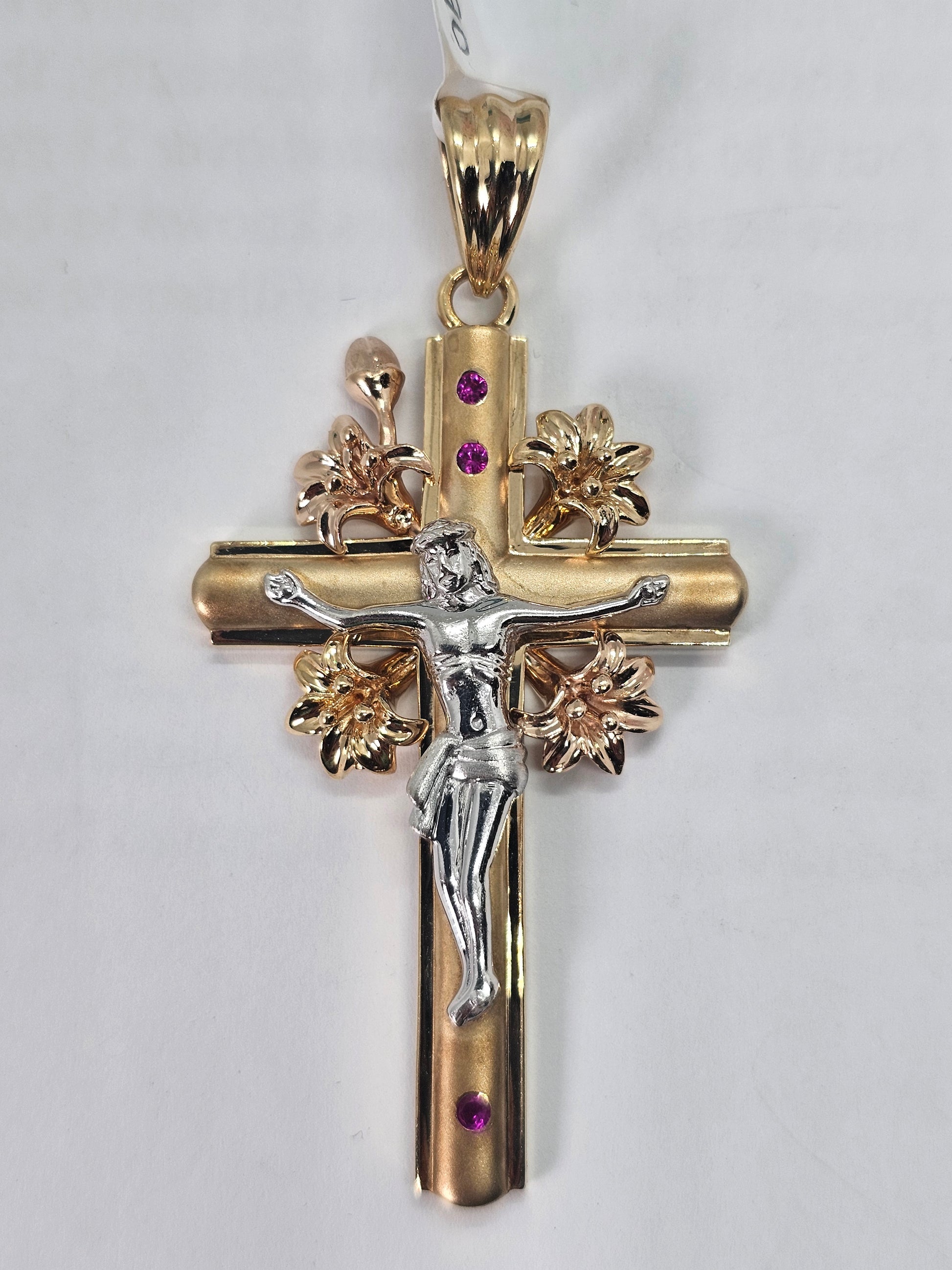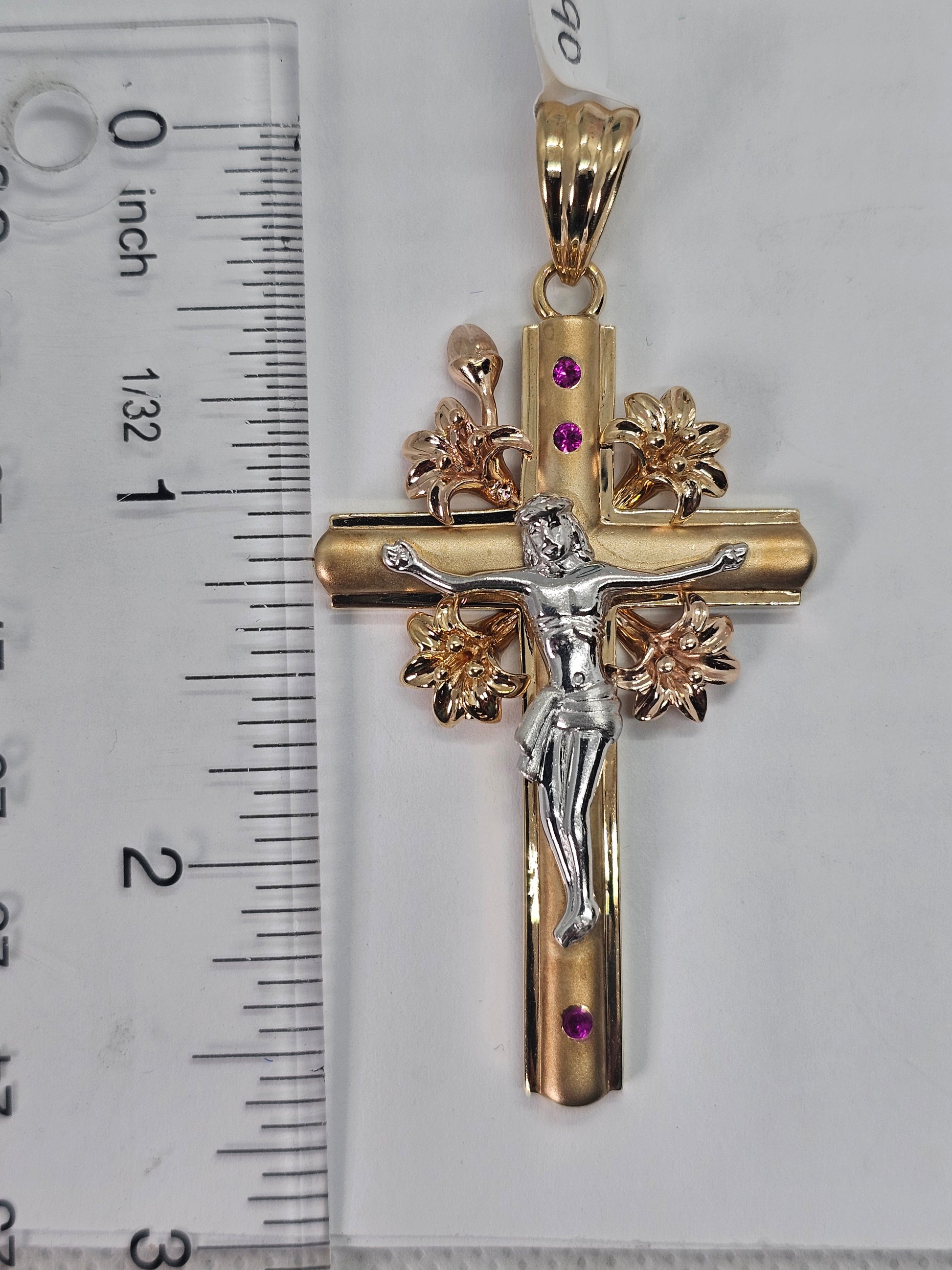 Dige Cruz 3 oros con adorno de floresAdd a touch of elegance to your look with Dige Cruz's 14k oro 3 Tonos necklace. This stunning piece features delicate flowers encrusted with di eso, making it perfect for any occasion. Crafted with high-quality 14k oro, it's a timeless addition to your jewelry collection.