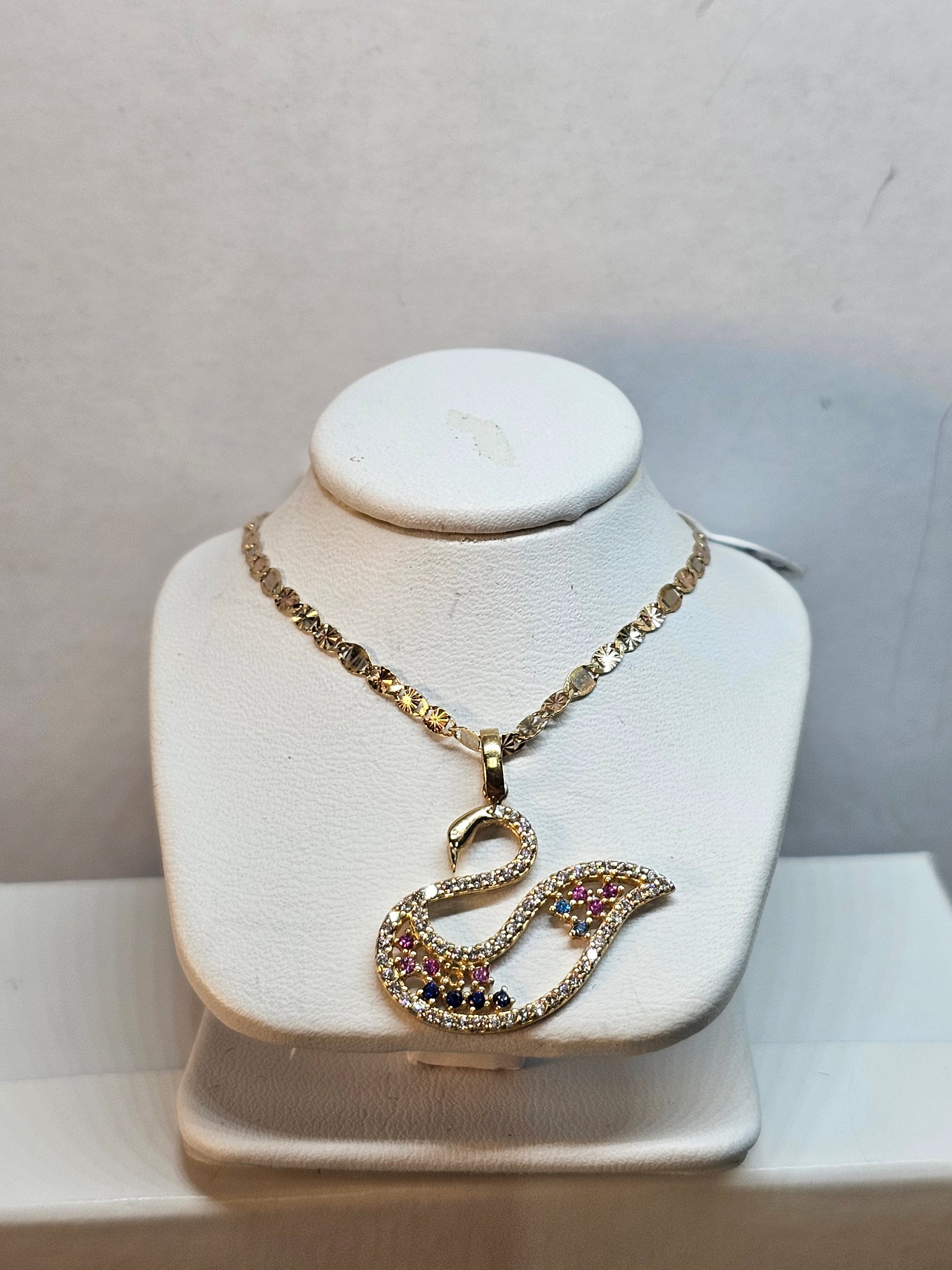 This delicate and elegant 14k gold swan pendant and chain combination is expertly crafted and truly unique. The swan symbolizes grace, beauty, and loyalty, making it the perfect gift for a loved one or a meaningful addition to your own jewelry collection. The 14k gold adds a touch of luxury and timeless quality to this stunning piece.