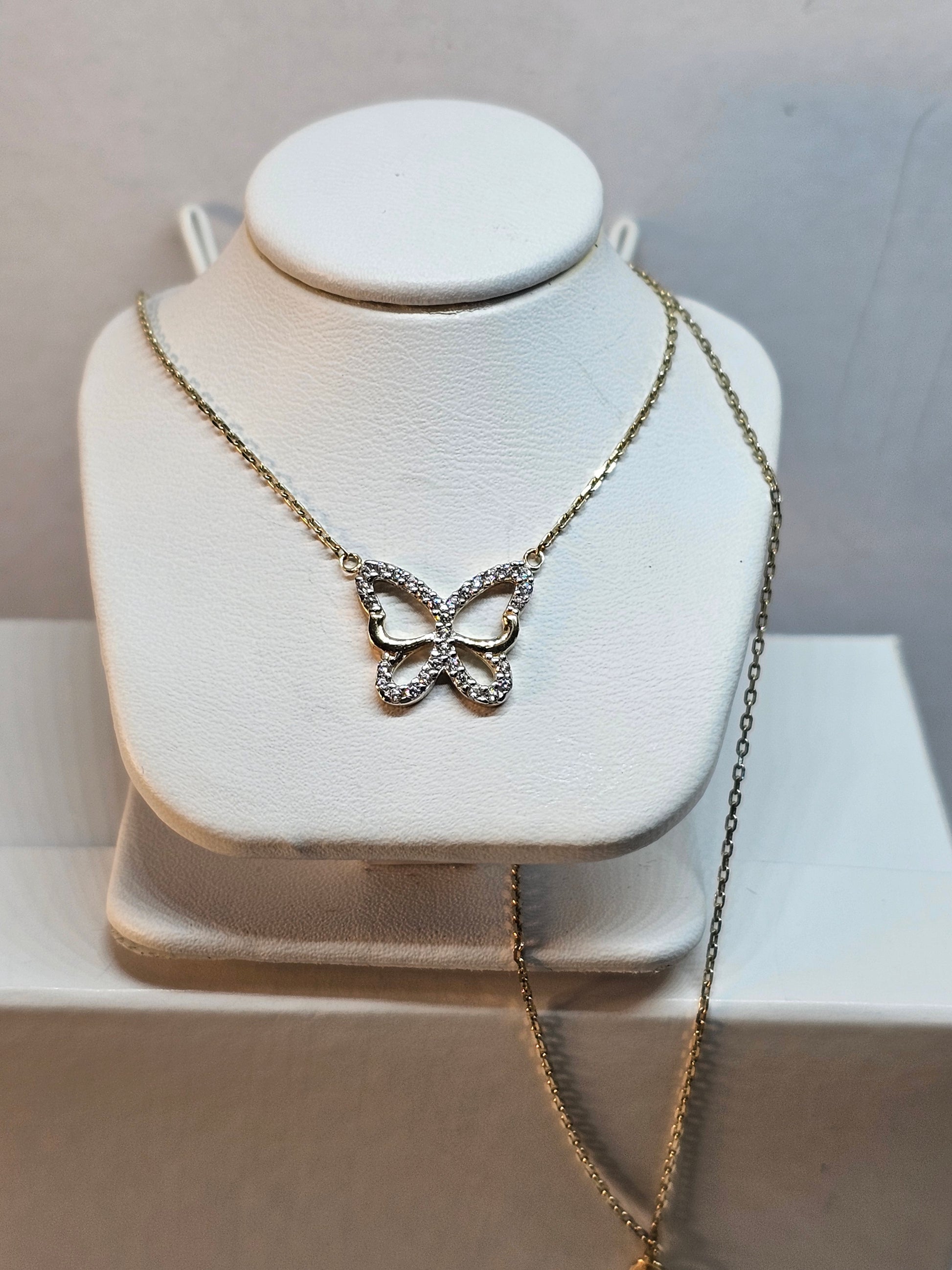 Invest in luxury with our Gargantilla de 14k oro. Crafted with a stunning mariposa design, this 14k gold necklace is a must-have for any jewelry collection. Stand out with elegant style and timeless beauty.