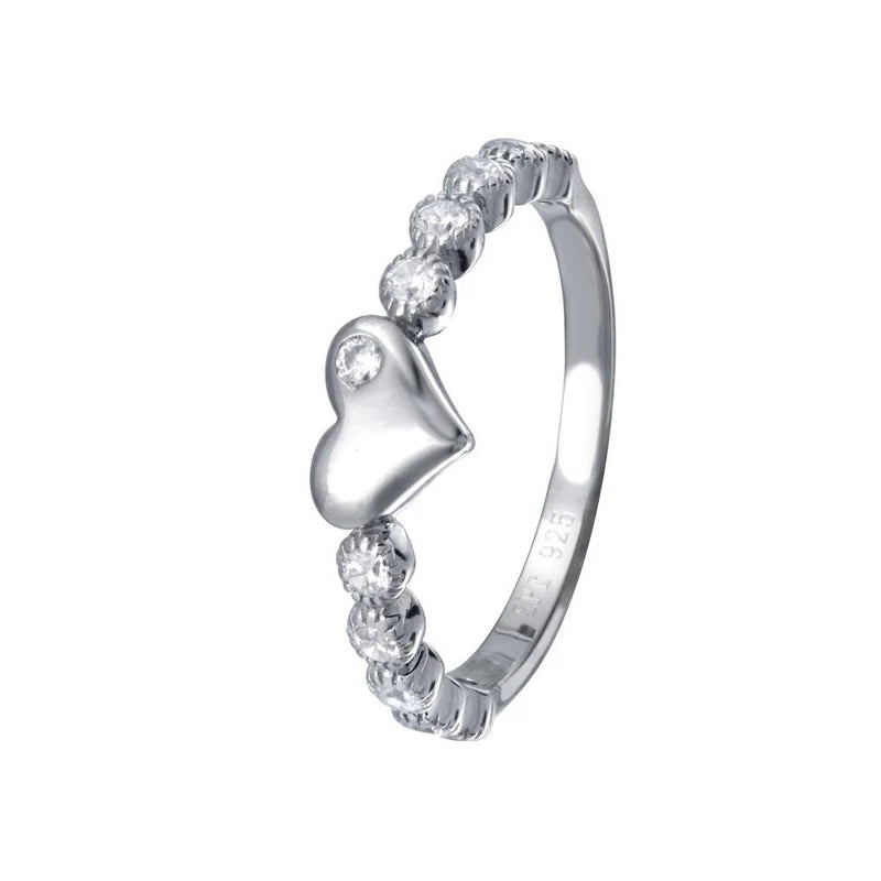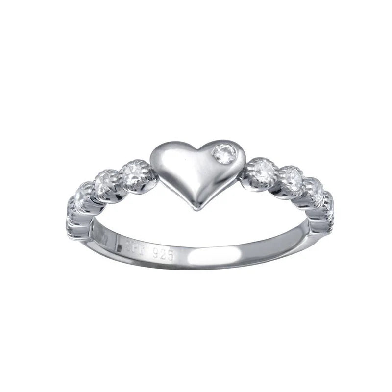 Sterling Rhodium Plated 925 Sterling SilverCZ Heart Bubble Shank Ring